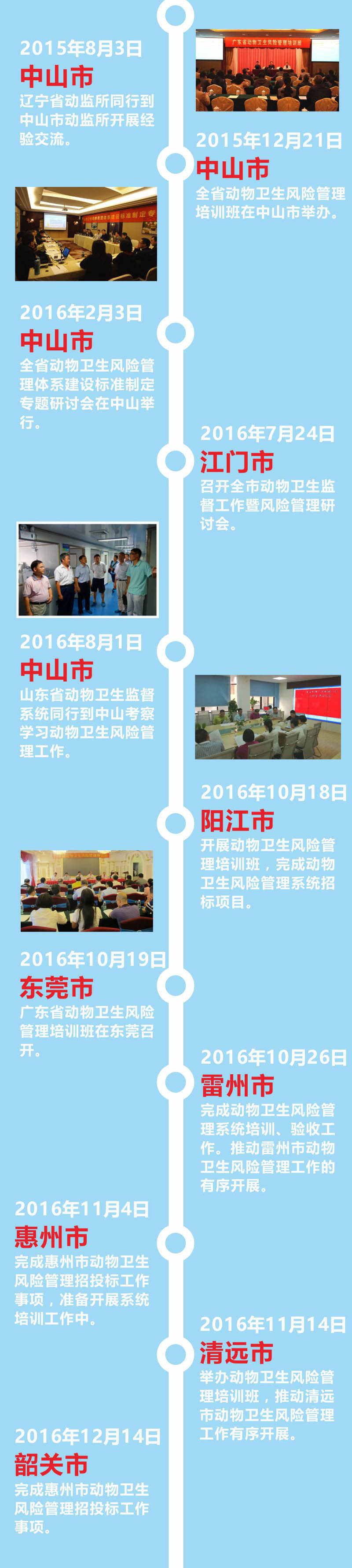 2014年动物卫生风险管理试点工作在中山市正式启动,随后在广东省动物卫生监督所的带领下,东莞、韶关、河源、惠州、阳江、清远和雷州等地市相继开展试点工作,组织执法人员参加风险管理培训班。2015年动物卫生风险管理系统在青岛市通过全国动物卫生风险评估专家委员会的鉴定。短短两年时间内,动物卫生风险管理试点遍布广东省内 8个地市。这充分说明动物卫生风险管理系统的应用推广取得了阶段性的成功。广东省农业厅和广东省动物卫生监督所对此给予了高度肯定,并表示,动物卫生风险管理系统的建立有效提高了工作效率,降低了行政成本,提升了物卫生的风险控制能力和监督管理水平,应该在全省范围内推广。